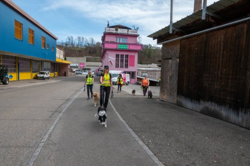 Der Trail war 5 resp. 6 Tage alt und ca. 5 km lang. Unsere Versteckperson war sehr kreativ beim davon laufen. Der Weg führte durch den Wald, mitten ins Wohnquartier, beim Schulhausareal vorbei in die Industriezone, natürlich wurde auch der Bahnhof ein bisschen tangiert zu guter Letzt noch einem Bach entlang bis zum Einkaufscenter. Hund & Mensch gaben alles.
